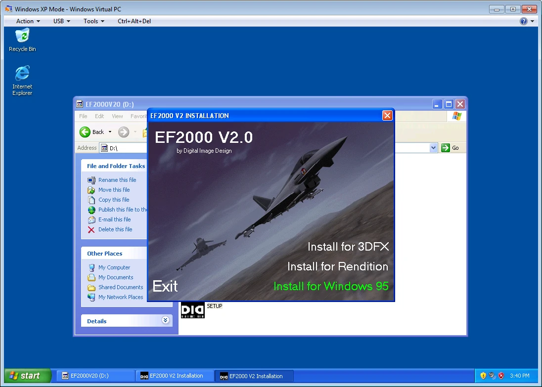This is fine for now. In fact, you may wish to install the EF2000 for Windows 95, or F-22 ADF, RSO, and TAW as well. Of course, you won't be running from the virtual folder in Windows 7/8, but this doesn't matter because no meaningful registry entries are made on installation.