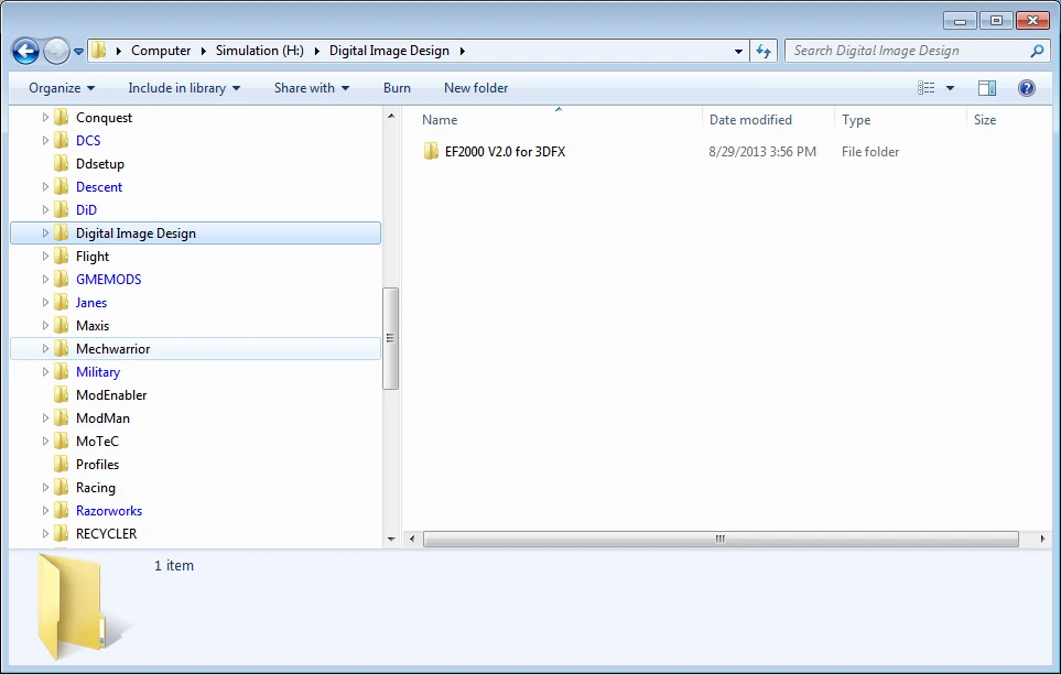 Congratulations. Your DID files are now resident and available on your Windows 7/8 system. You should not need to create shortcuts if you are using DOSBox, but you will want to create a shortcut to superw.exe if you are running EF2000 for Windows 95.